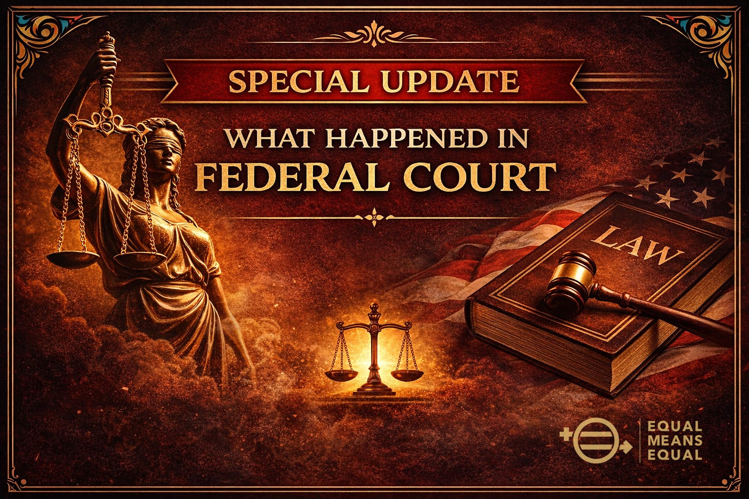 The judge today dismissed the portion of our case that asked the court to recognize the ERA as valid. He stated that he is bound by existing precedent and guided by prior federal court decisions (the Valame case in California and the Illinois v. Ferriero case from D.C.) that have already rejected the ERA’s validity.